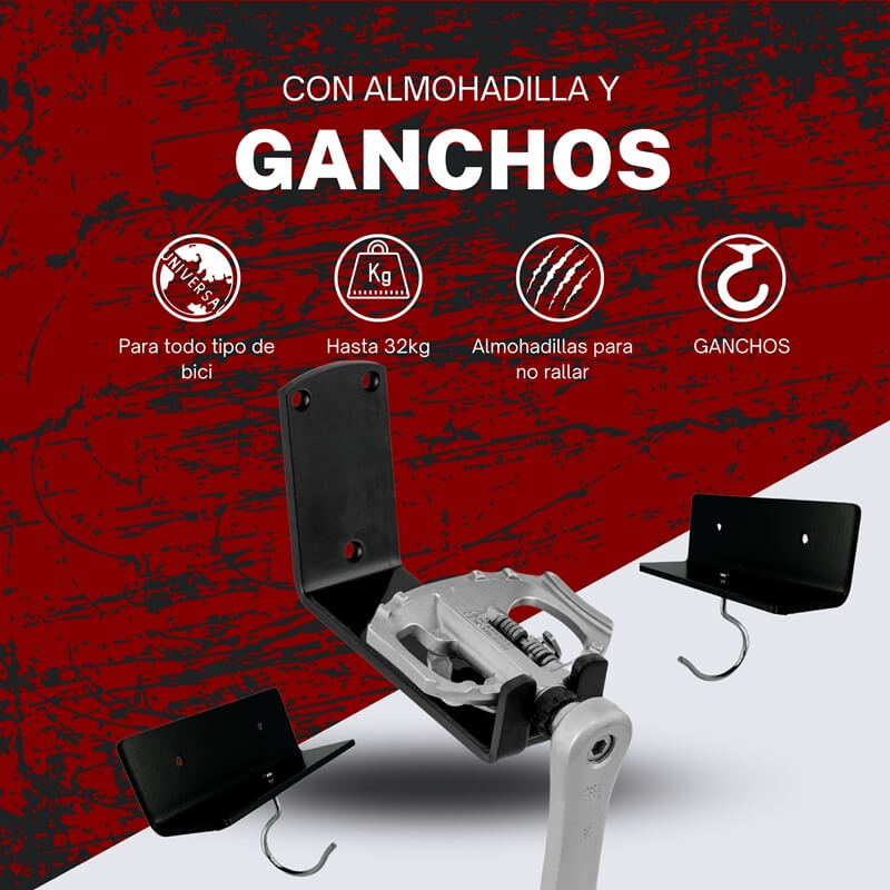 Soporte de bici de pared: ahorro de espacio, instalación fácil y segura. Ideal para MTB y carretera. Protege y organiza tu bicicleta y tus accesorios con estilo.